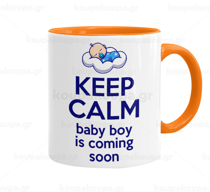 KEEP CALM baby boy is coming soon!!!, Mug colored orange, ceramic, 330ml