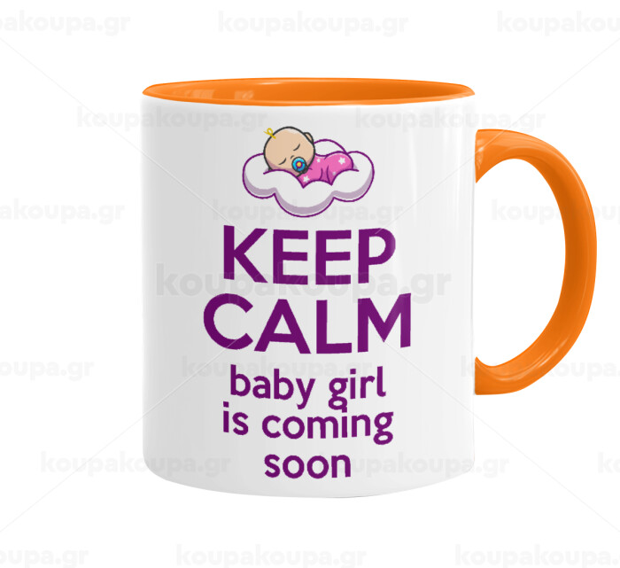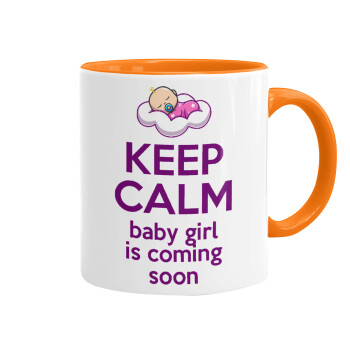 KEEP CALM baby girl is coming soon!!!, Mug colored orange, ceramic, 330ml