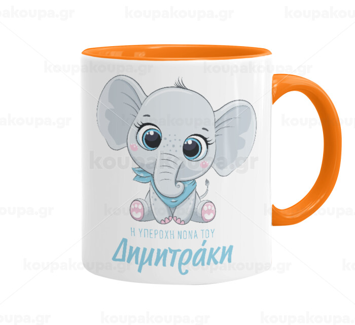 Η νονά μου, ελεφαντάκι γαλάζιο, Mug colored orange, ceramic, 330ml