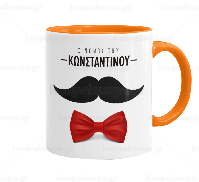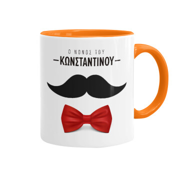 Ο νονός μου, μουστάκι με παπιγιόν, Mug colored orange, ceramic, 330ml