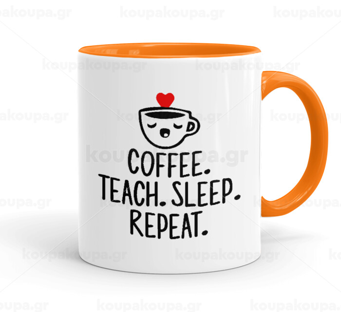 Coffee Teach Sleep Repeat, Mug colored orange, ceramic, 330ml