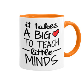 It takes big heart to teach little minds, Mug colored orange, ceramic, 330ml
