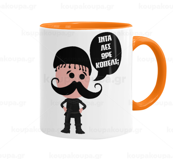 Κρητικός "Ίντα λες ωρέ κοπέλι", Mug colored orange, ceramic, 330ml