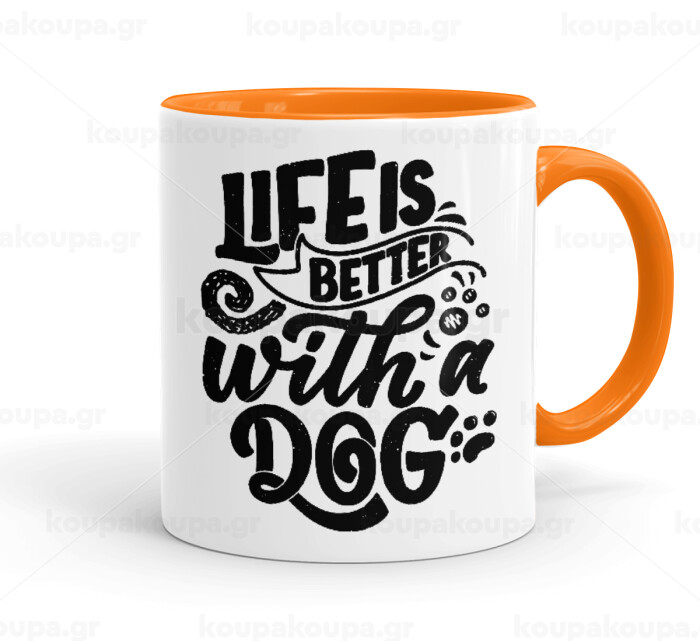 Life is better with a DOG, Mug colored orange, ceramic, 330ml