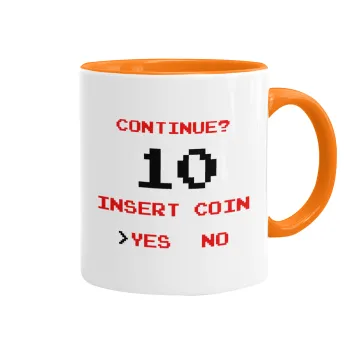 Continue? YES - NO, Mug colored orange, ceramic, 330ml