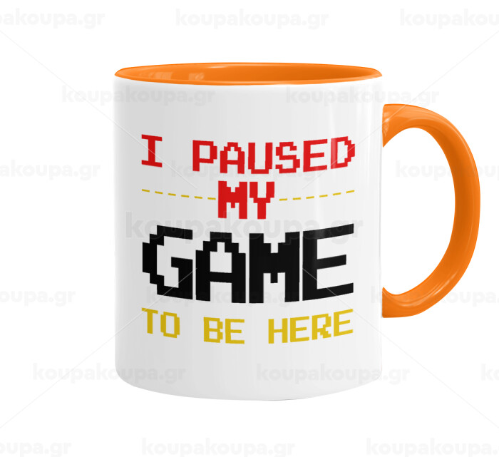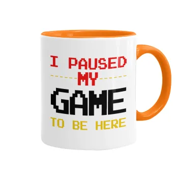 I paused my game to be here, Mug colored orange, ceramic, 330ml