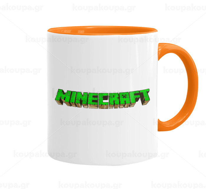 Minecraft logo green, Mug colored orange, ceramic, 330ml