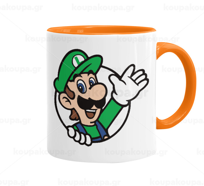 Super mario Luigi win, Mug colored orange, ceramic, 330ml