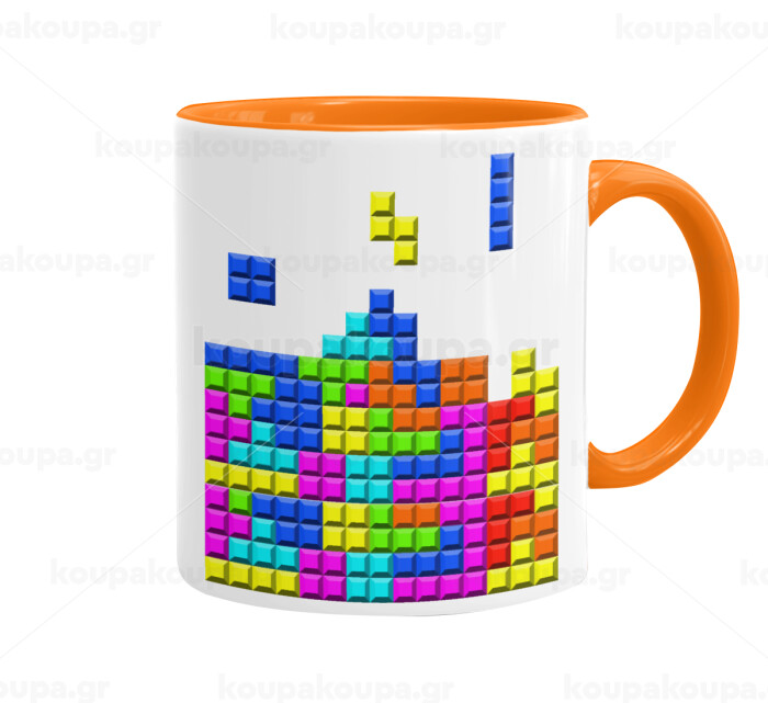 Tetris blocks, Mug colored orange, ceramic, 330ml