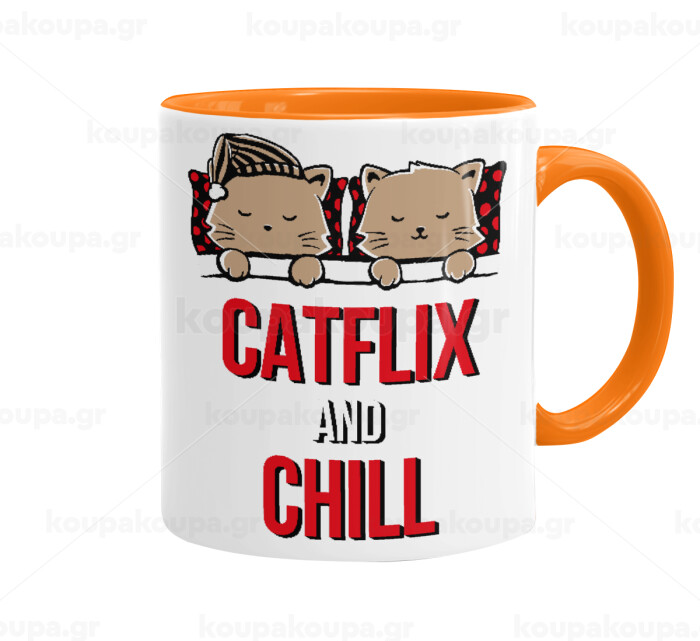 Catflix and Chill, Mug colored orange, ceramic, 330ml