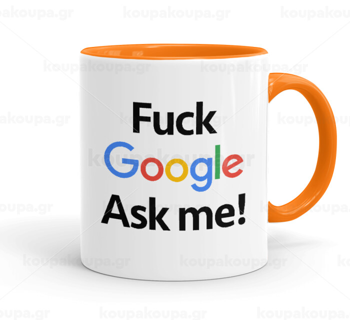 Fuck Google, Ask me!, Mug colored orange, ceramic, 330ml