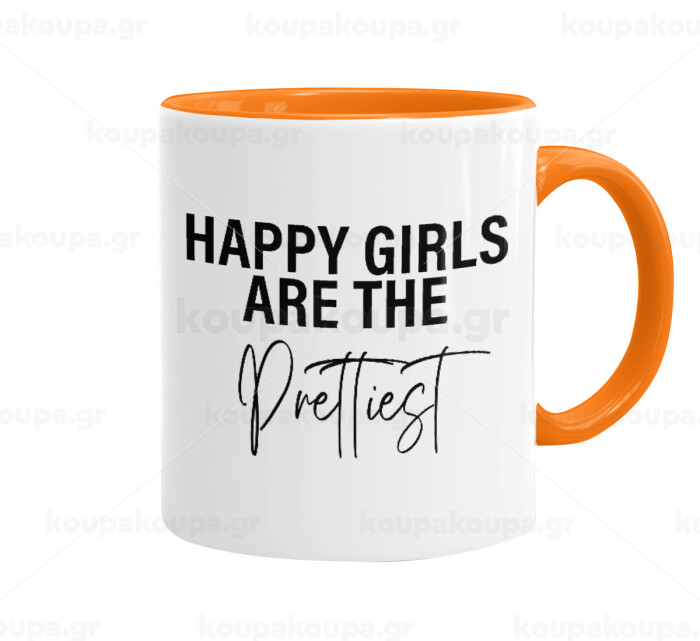 Happy girls are the prettiest, Mug colored orange, ceramic, 330ml