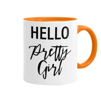 Hello pretty girl, Mug colored orange, ceramic, 330ml
