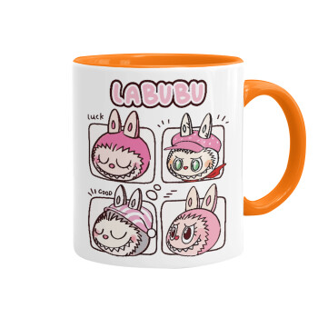 Labubu pink, Mug colored orange, ceramic, 330ml