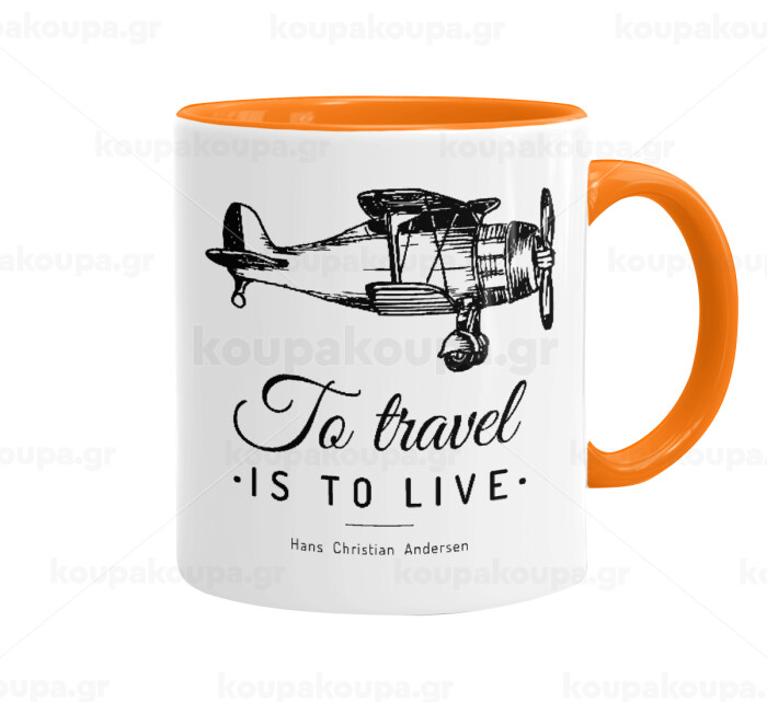 To travel is to live, Mug colored orange, ceramic, 330ml