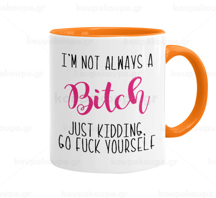 I'm not always a bitch, just kidding go f..k yourself , Mug colored orange, ceramic, 330ml