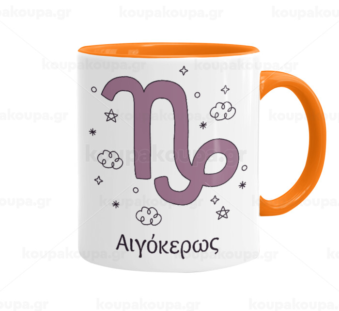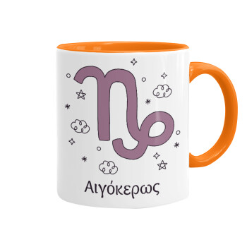 Ζώδια Αιγόκερως, Mug colored orange, ceramic, 330ml