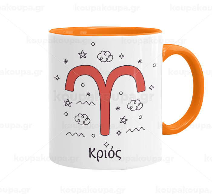 Ζώδια Κριός, Mug colored orange, ceramic, 330ml
