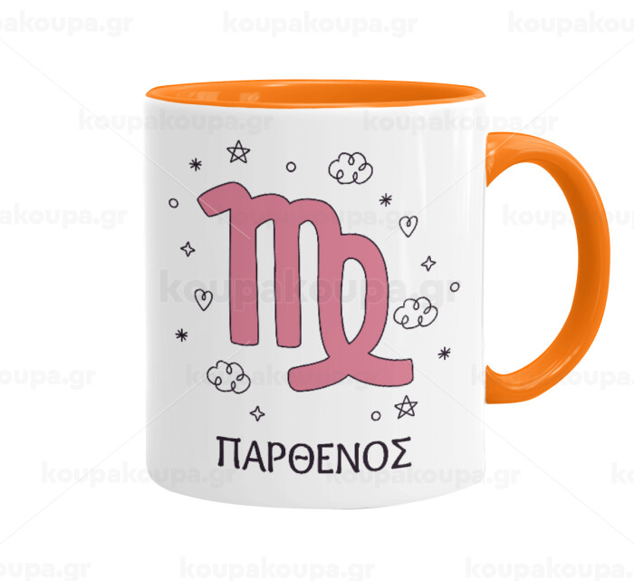 Ζώδια Παρθένος, Mug colored orange, ceramic, 330ml