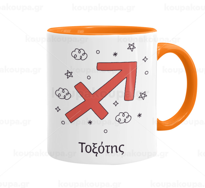 Ζώδια Τοξότης, Mug colored orange, ceramic, 330ml