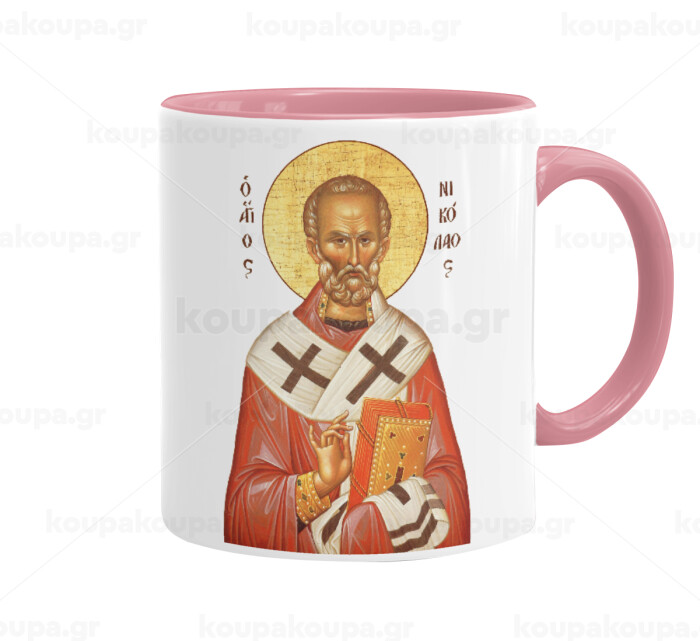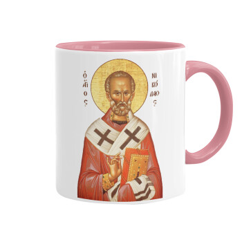 Saint Nicholas orthodox , Mug colored pink, ceramic, 330ml