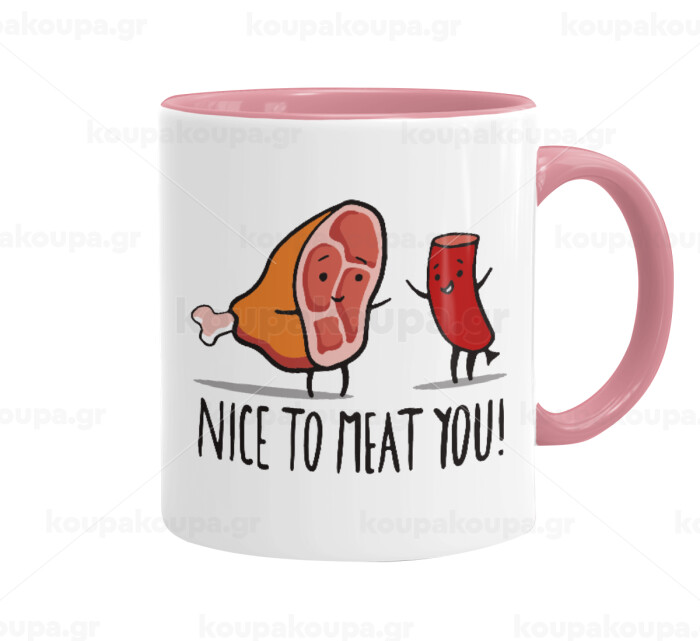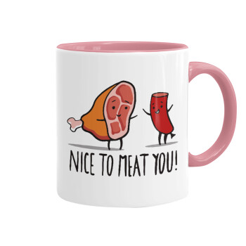 Nice to MEAT you, Mug colored pink, ceramic, 330ml