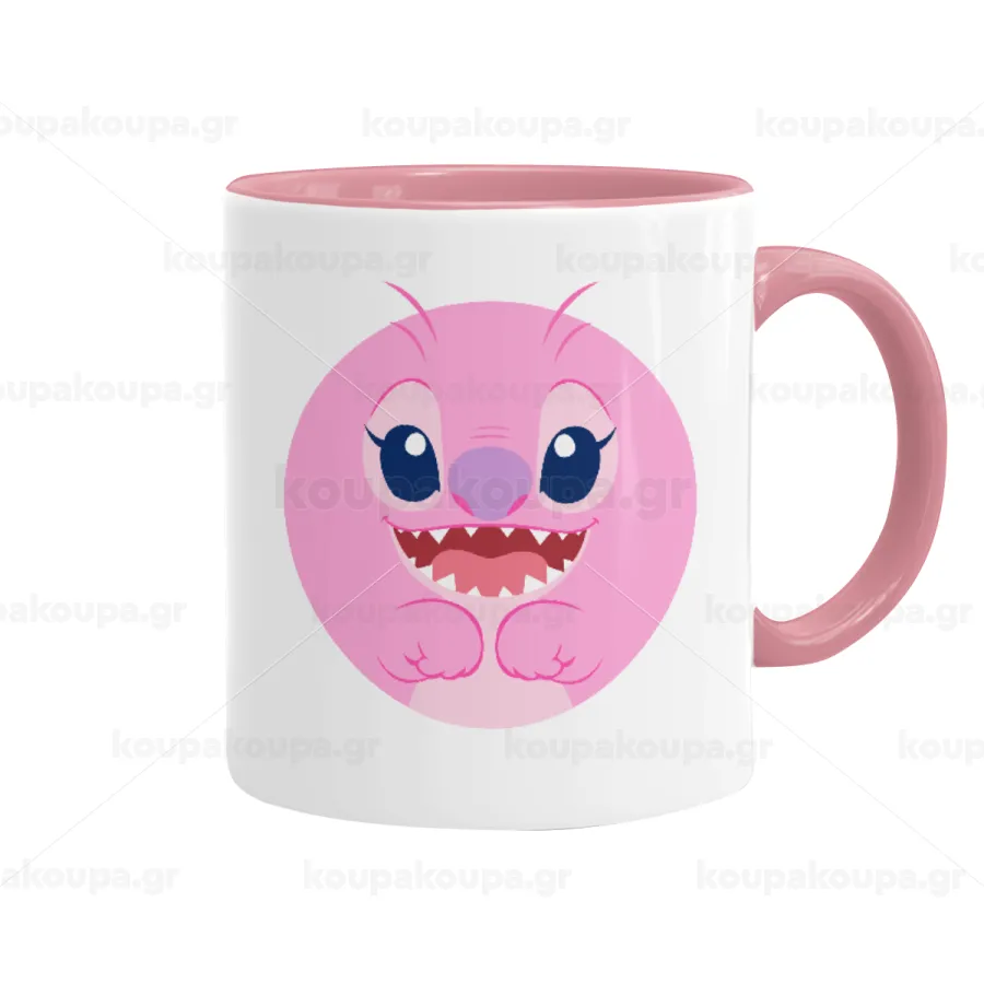 Lilo & Stitch Angel pink, Mug colored pink, ceramic, 330ml