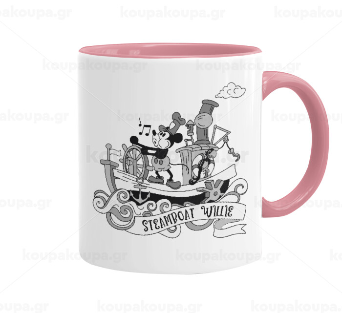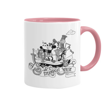 Mickey steamboat, Mug colored pink, ceramic, 330ml