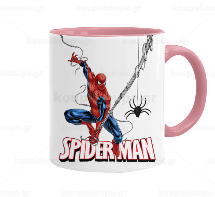 Spiderman fly, Mug colored pink, ceramic, 330ml