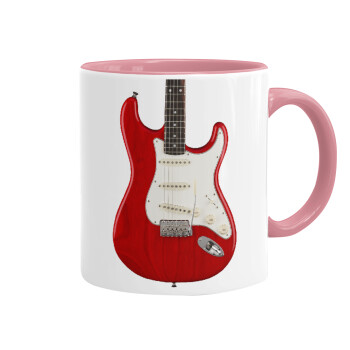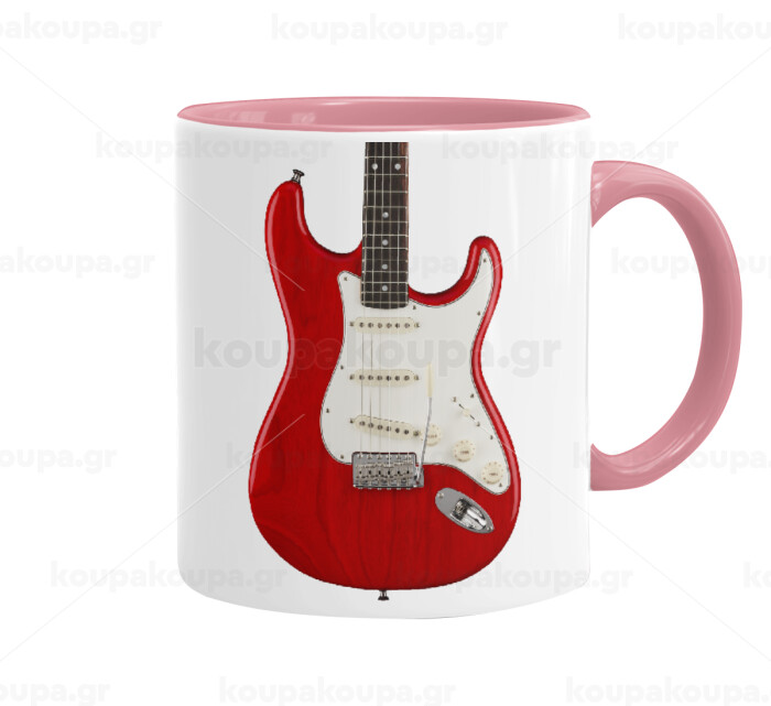 Guitar stratocaster, Mug colored pink, ceramic, 330ml