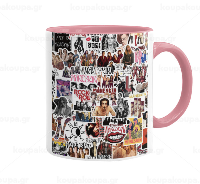 Maneskin stickers, Mug colored pink, ceramic, 330ml