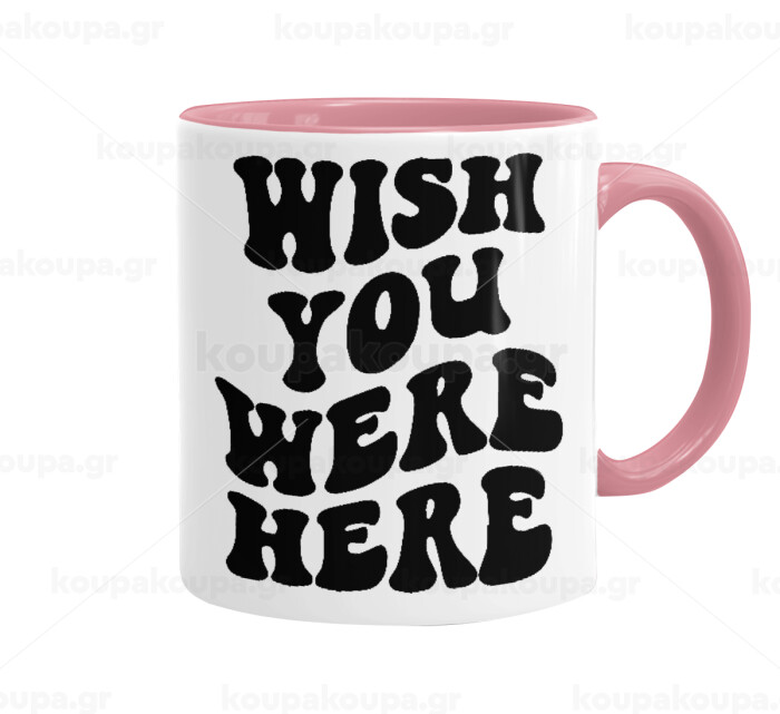 Wish you were here, Mug colored pink, ceramic, 330ml