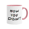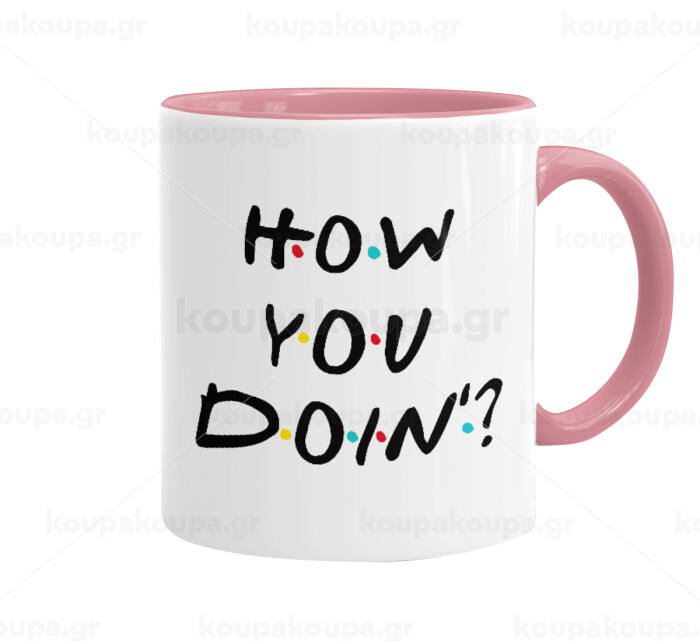 Friends How You Doin'?, Mug colored pink, ceramic, 330ml