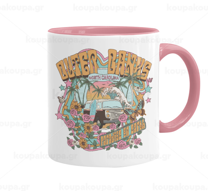 Outerbanks paradise on earth, Mug colored pink, ceramic, 330ml