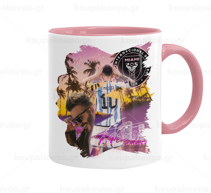 Lionel Messi Miami, Mug colored pink, ceramic, 330ml