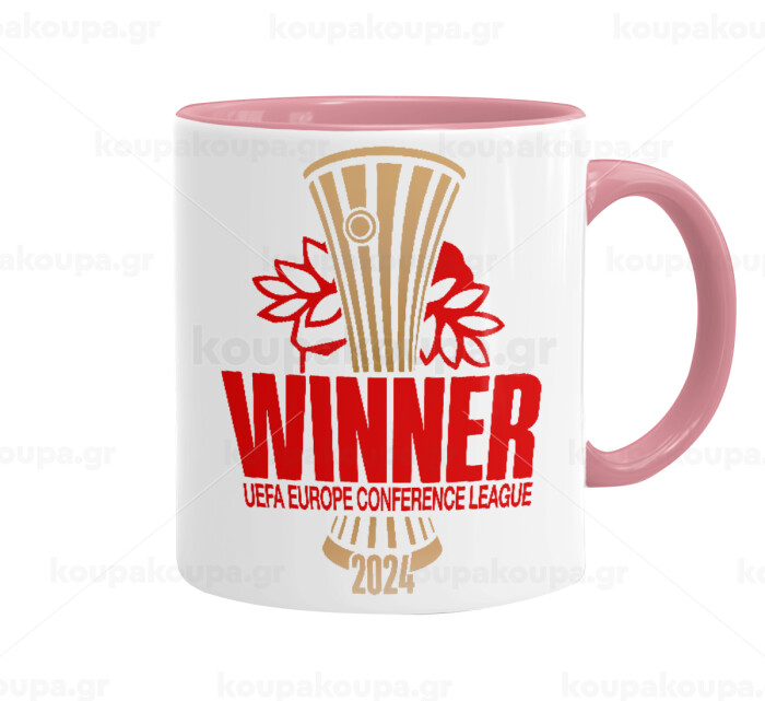 Europa Conference League WINNER, Mug colored pink, ceramic, 330ml