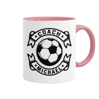 Soccer coach, Mug colored pink, ceramic, 330ml