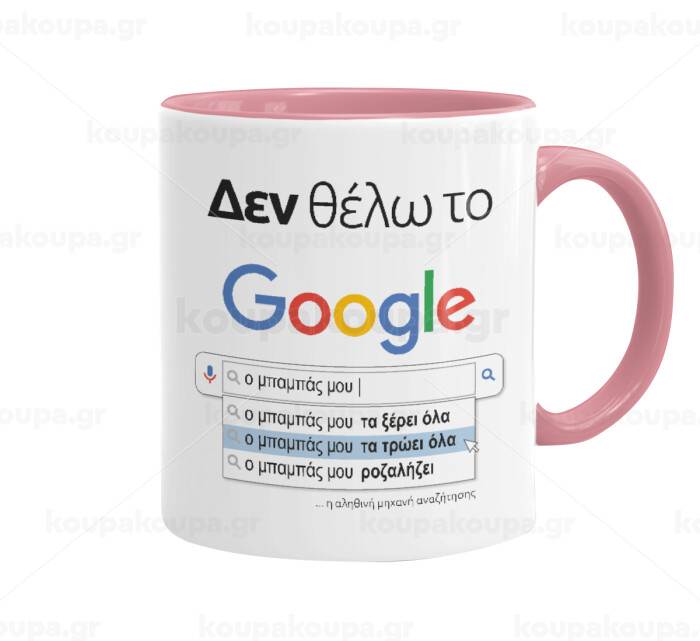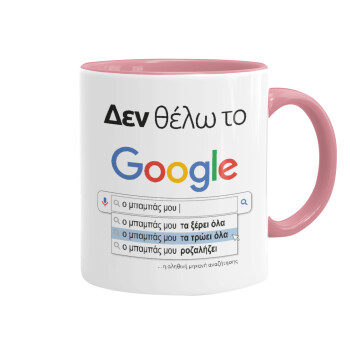 Δεν θέλω το Google, ο μπαμπάς μου..., Mug colored pink, ceramic, 330ml