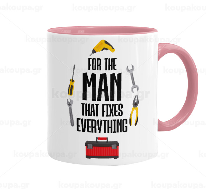 For the man that fixes everything!, Mug colored pink, ceramic, 330ml