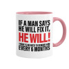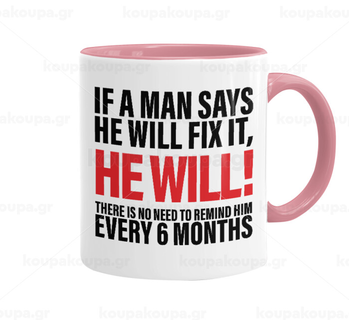If a man says he will fix it He will There is no need to remind him every 6 months, Mug colored pink, ceramic, 330ml