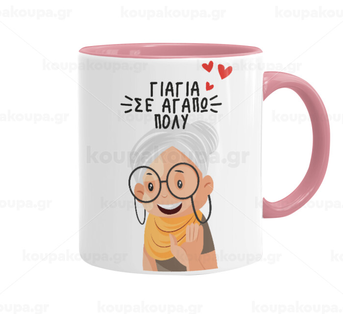 Γιαγιά σε αγαπώ πολύ!, Mug colored pink, ceramic, 330ml