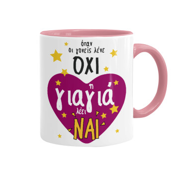 Όταν οι γονείς λένε ΟΧΙ, η γιαγιά λέει ΝΑΙ, Mug colored pink, ceramic, 330ml