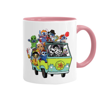 Stitch Halloween scooby car, Mug colored pink, ceramic, 330ml