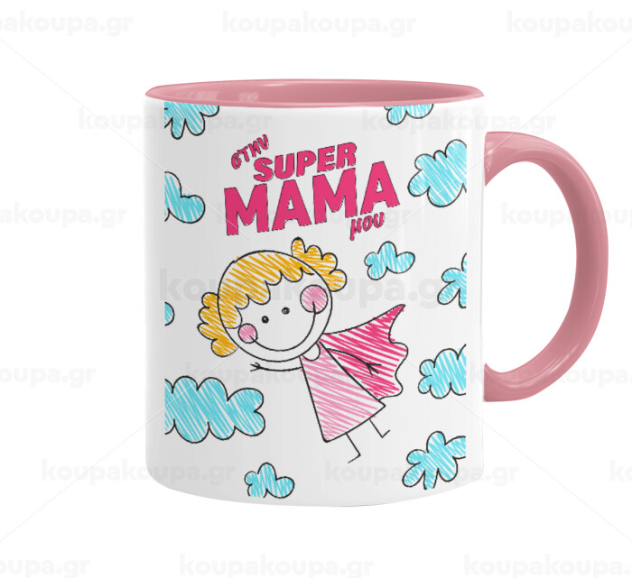 Στην SUPER μαμά μου, comic, Mug colored pink, ceramic, 330ml