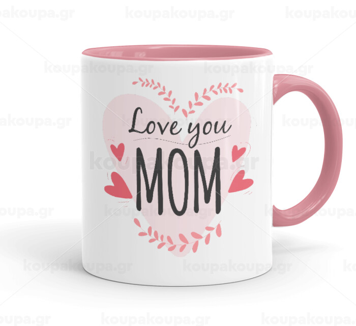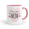 Mother's day I Love you Mom heart, Mug colored pink, ceramic, 330ml