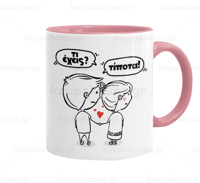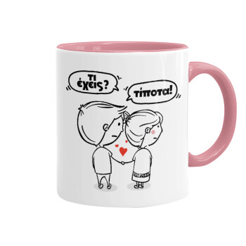Τι έχεις? Τίποτα!, Mug colored pink, ceramic, 330ml