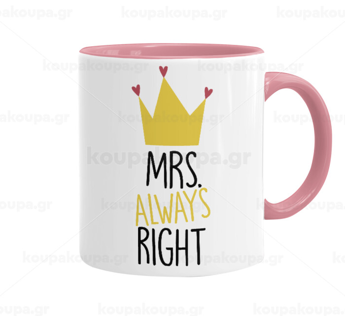 Mrs "Always" right, Mug colored pink, ceramic, 330ml
