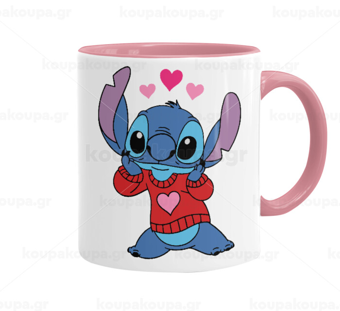 Stitch heart, Mug colored pink, ceramic, 330ml