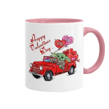 Yoda, happy valentines day (xoxo), Mug colored pink, ceramic, 330ml