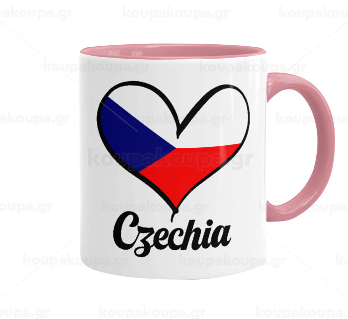 Czechia flag, Mug colored pink, ceramic, 330ml